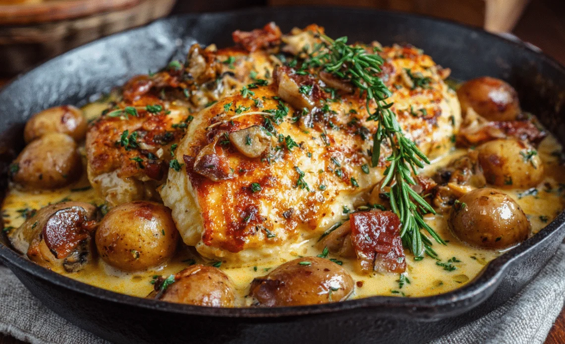 Serve this Chicken Normandy with creamy mashed potatoes, crusty bread, or a light green salad to balance the richness of the dish. It’s an excellent choice for Sunday family dinners or festive gatherings.