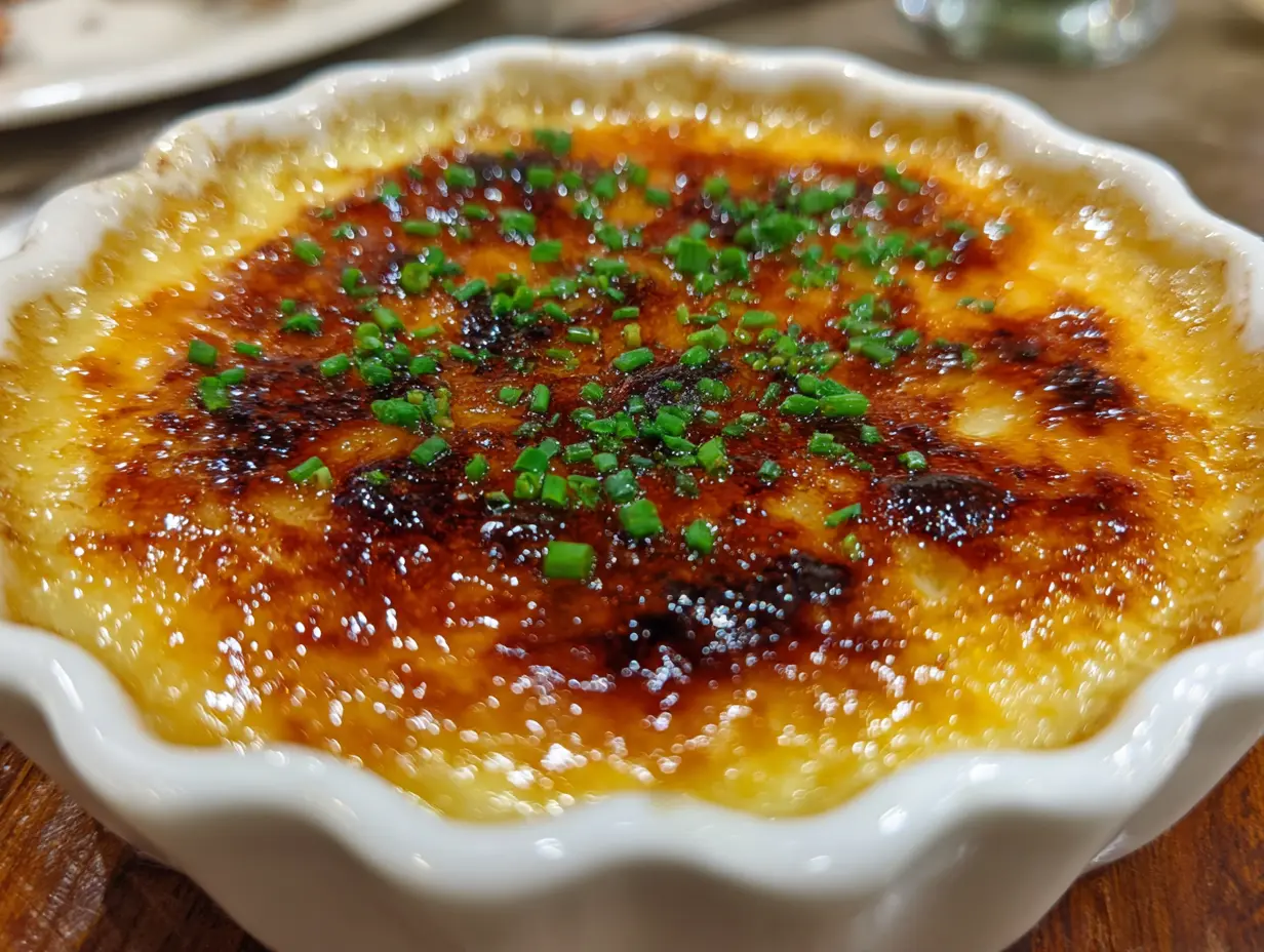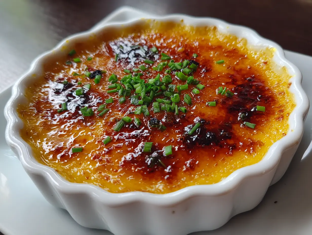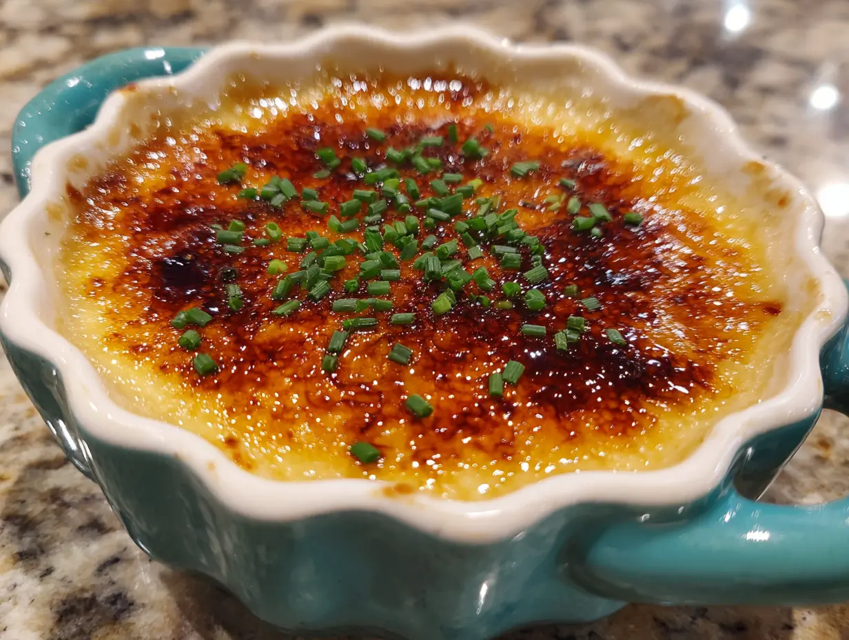 - Garnish and Serve: Allow the brulee to cool for a minute before garnishing with chopped chives. Serve immediately.
