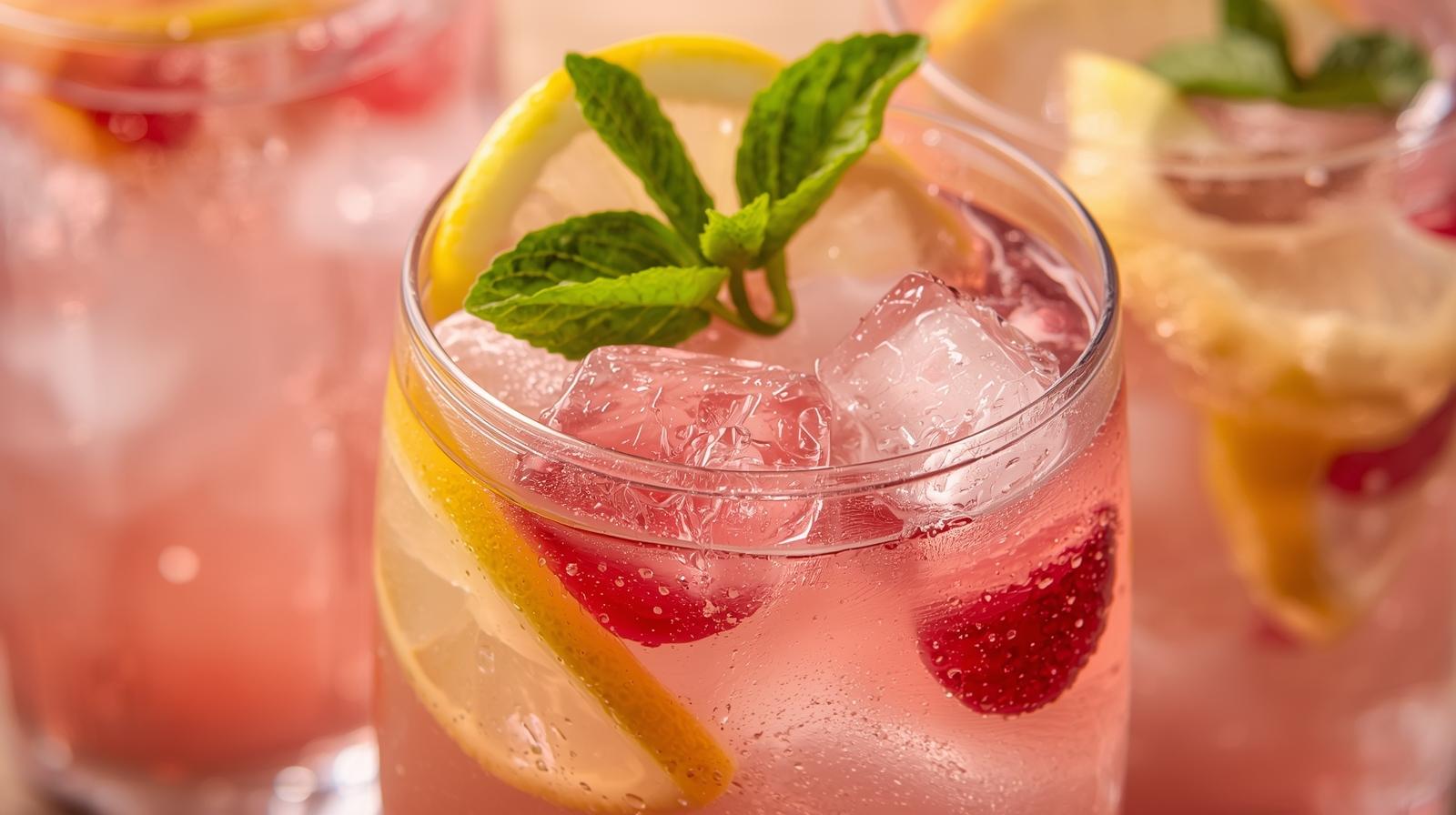- Garnish each glass with a lemon slice and a sprig of fresh mint.