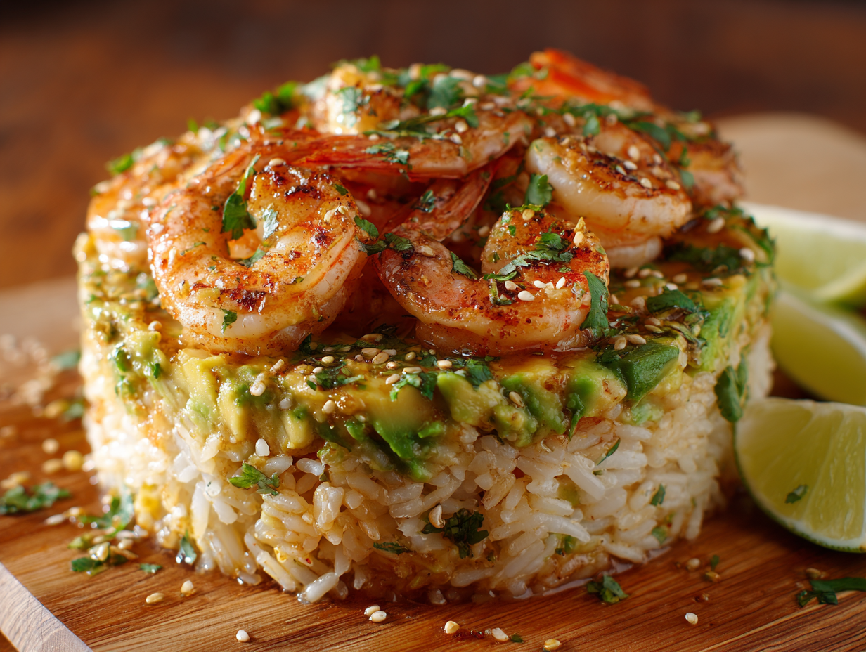 Honey Lime Shrimp & Avocado Rice Stack Recipe
