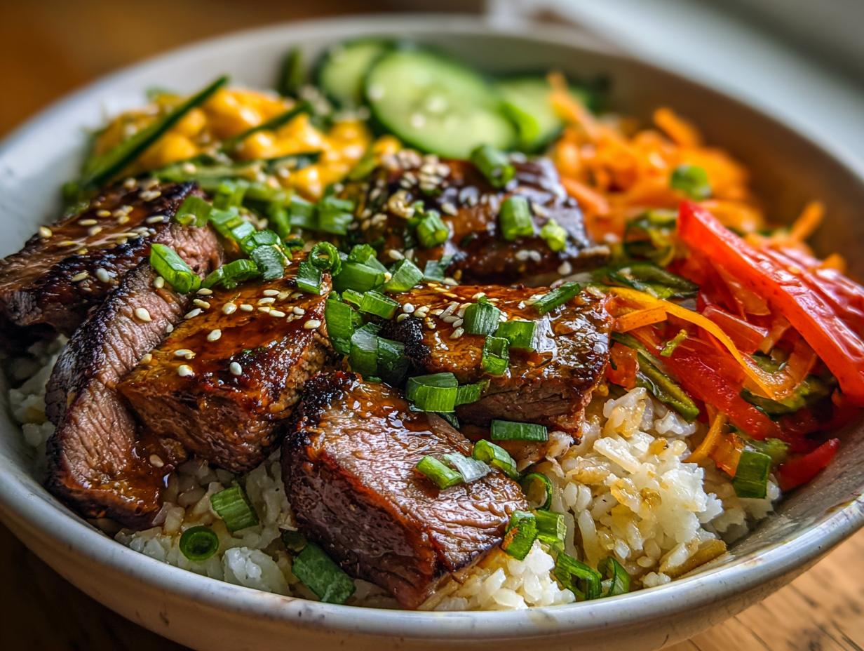 Discover how to make Korean BBQ Steak Rice Bowls. A delicious recipe with detailed instructions.