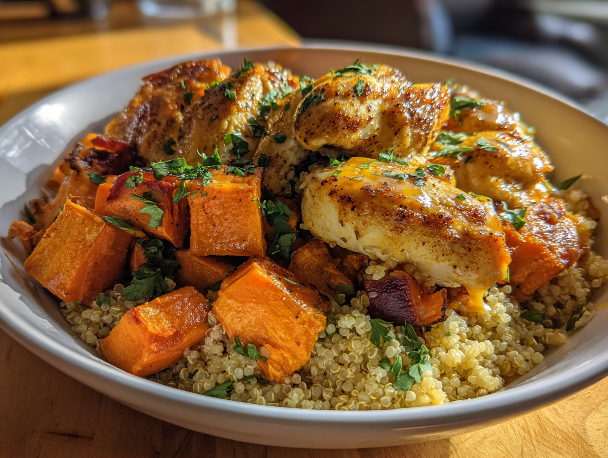 Maple Dijon Chicken & Sweet Potato Bowls